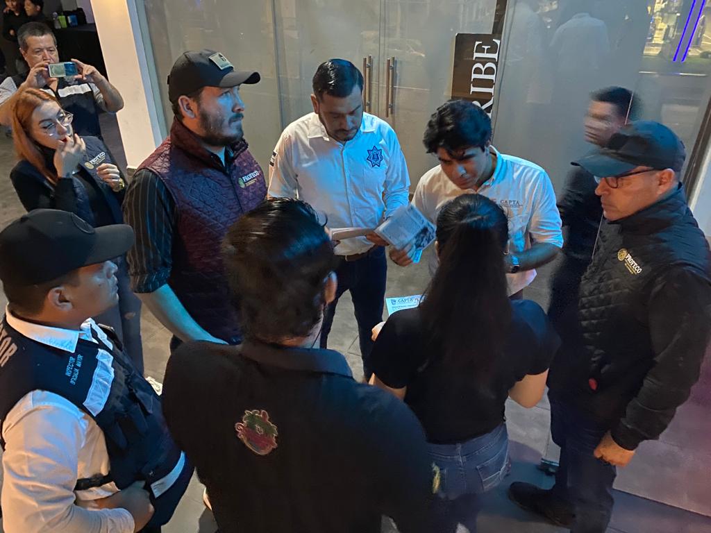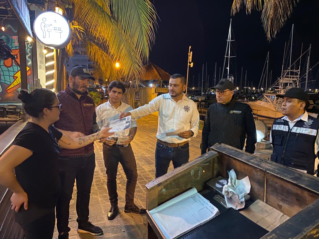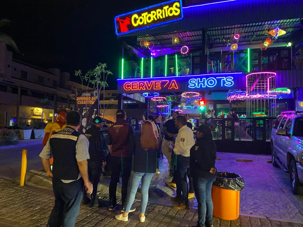 Mazatlán, Sinaloa 21 de Julio de 2023.- Buscando la sana convivencia y paz entre asistentes de los diferentes centros nocturnos y bares de la ciudad, la Secretaría de Seguridad Pública Municipal a través de Programas Preventivos, CAPTA, PROFECO y Oficialía Mayor visitaron dichos establecimientos durante la noche del jueves.