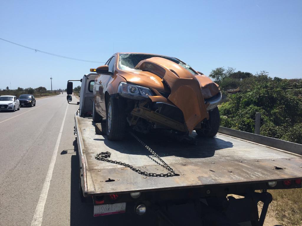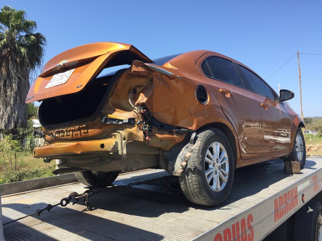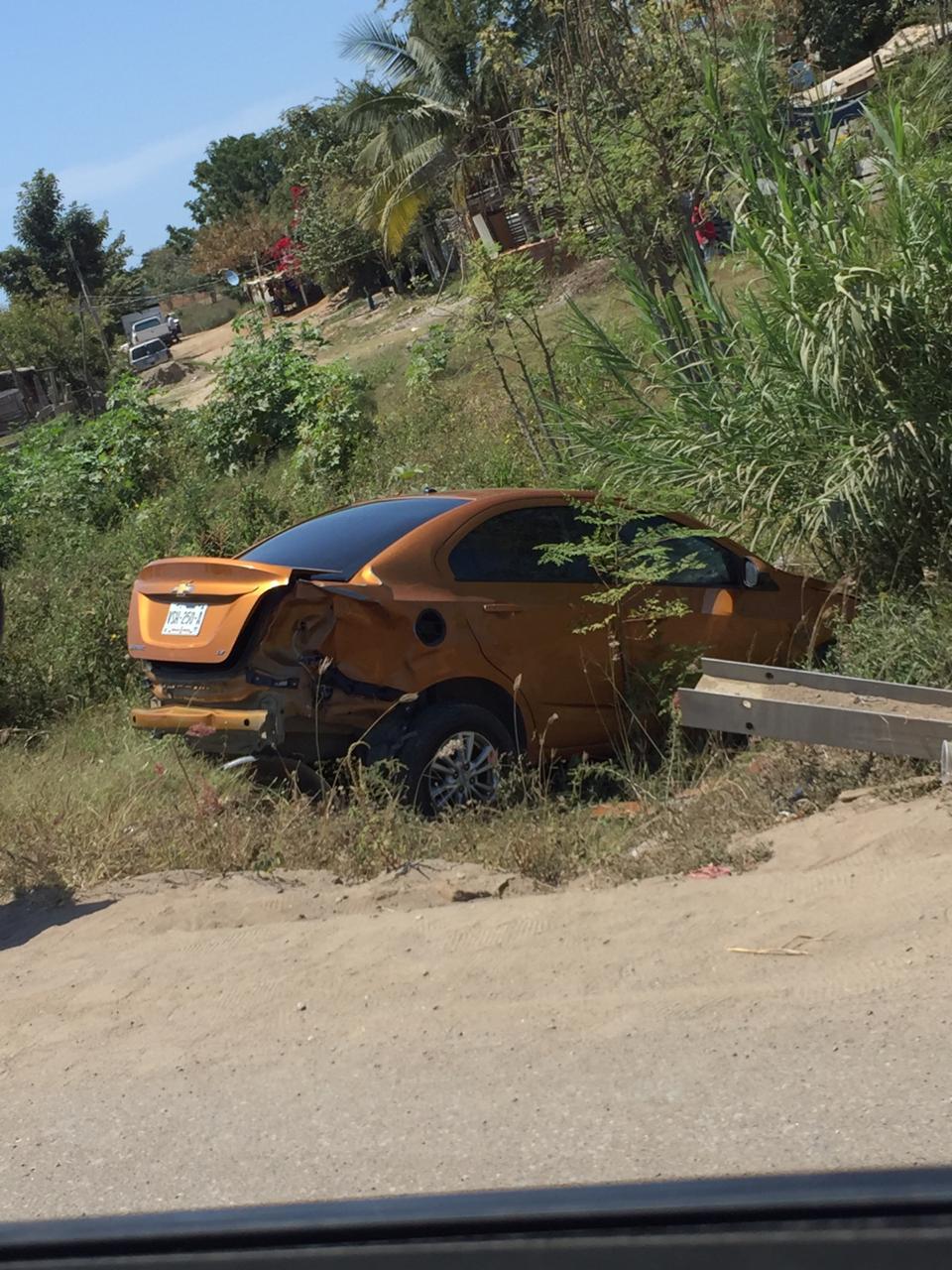 Datos proporcionados por el conductor refieren que una camioneta, de la cual se desconocen las características, le salió al paso de una calle de terraceria, golpeando este la parte trasera del automóvil Chevrolet Sonic color salmón, provocando esto que el carro diera volteretas hasta terminar en el fondo de un canal de la zona.