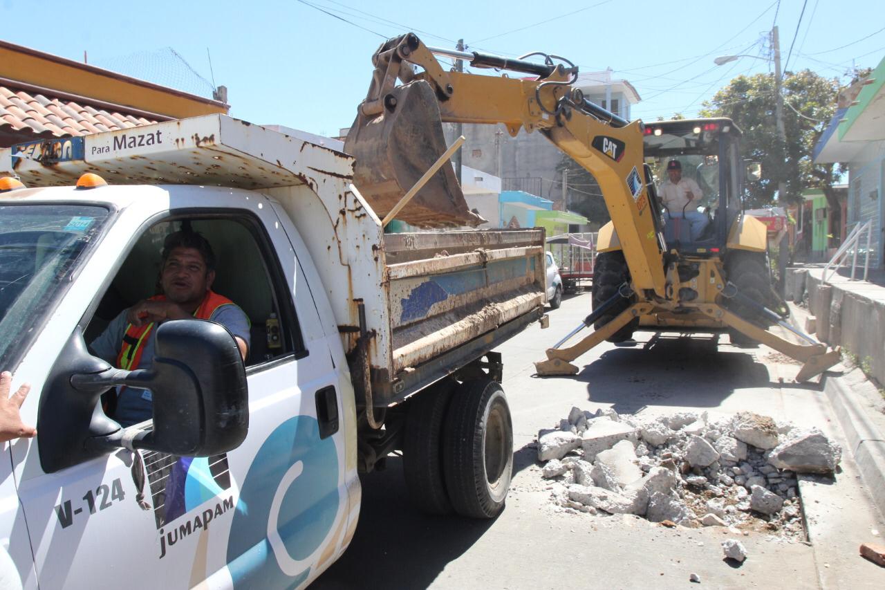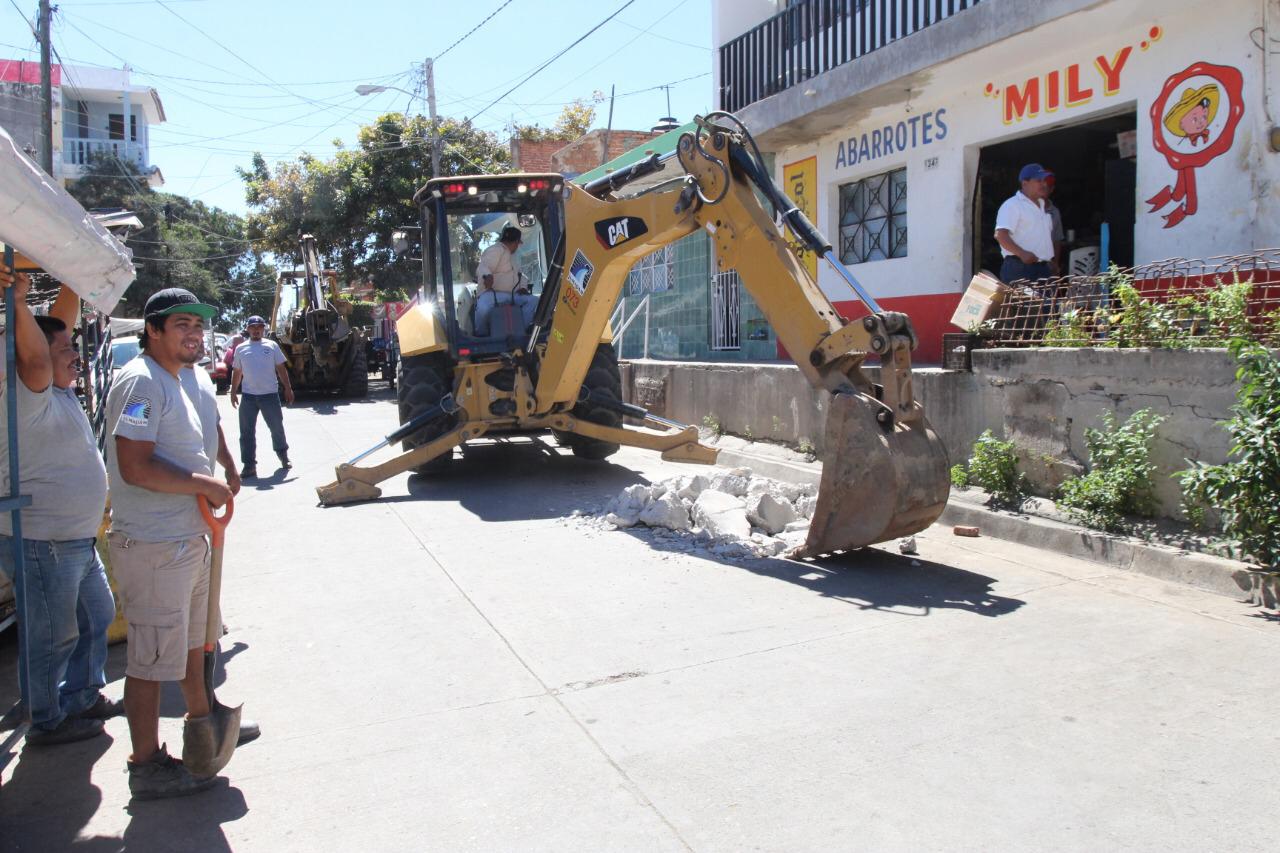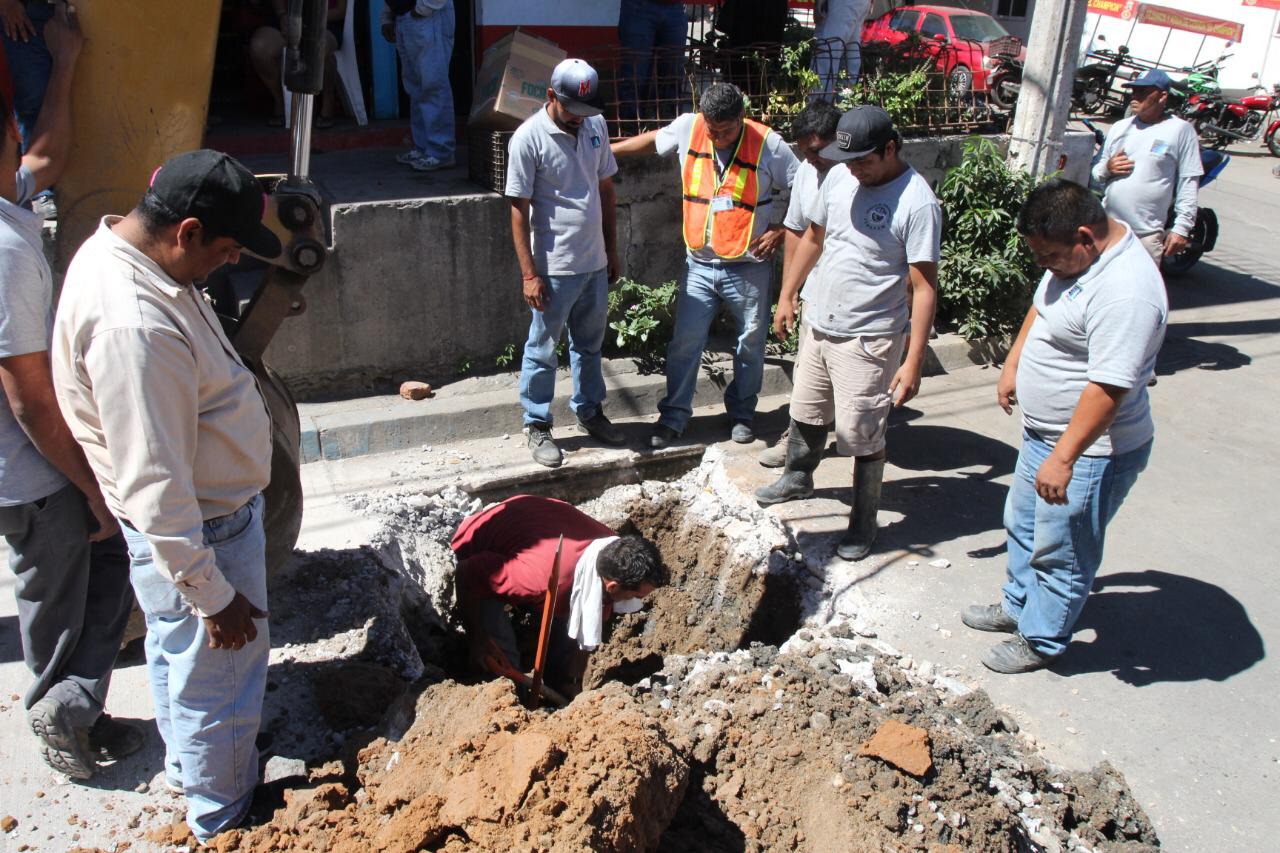 Los trabajos iniciaron al filo de las 11:00 horas con la demolición del pavimento, posteriormente excavar con la máquina retroexcavadora hasta llegar al tubo de alimentación de agua potable donde se encuentra la abrazadera, y la llave de inserción que va al domicilio, y luego se cierra para finalmente se corta el agua, para luego rellenar la excavación, y el colado con concreto premezclado.