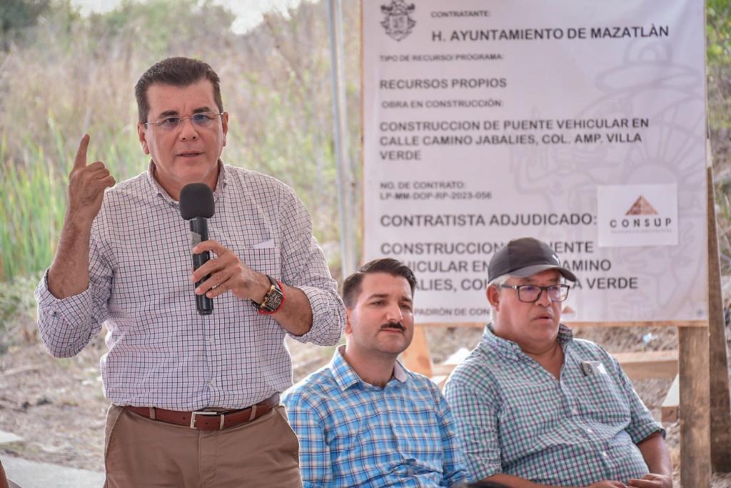 Mazatlán, Sinaloa, 25 de mayo de 2023.- La solicitada construcción de un puente vehicular en Ampliación Villa Verde se ha convertido en una realidad gracias al Gobierno Municipal que encabeza Edgar González, Alcalde de Mazatlán.