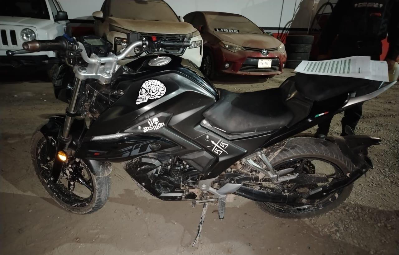 La motocicleta, color negro, fue asegurada y puesta a resguardo en tanto personal de la Vicefiscalía realiza los trámites de ley necesarios y determina la situación jurídica de la unidad, así como la notificación a quien resulte ser el propietario.
