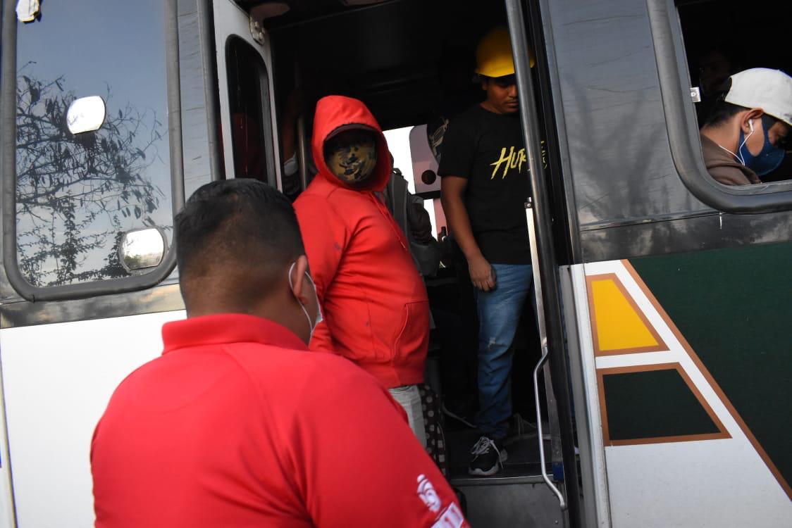 Durante las acciones, el personal checa el uso obligatorio de cubre bocas de todos los usuarios y el chofer, así como la sana distancia.