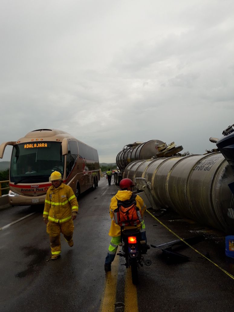 El coordinador Municipal de Protección Civil, Omar Copado, informó que el derrame ya está controlado e incluso destacó que se pasó el combustible a otras cisternas de la misma compañía.